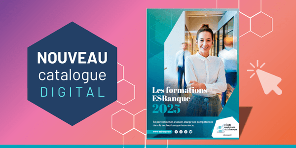 Vous souhaitez vous former avec l’ESBanque ? Découvrez notre nouveau catalogue digital, conçu spécialement pour vous offrir une expérience simple, claire et interactive. Grâce à un sommaire cliquable, vous accédez directement à notre offre de formations en détails, avec la possibilité de vous inscrire en quelques clics. Ce catalogue repensé, à l’image de notre nouvelle charte graphique, reflète notre volonté de vous proposer des outils modernes, digitalisés et toujours actualisés pour mieux répondre à vos attentes.